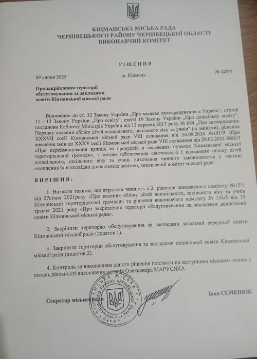 Територія обслуговування закріплена за Шипинецьким ЗДО